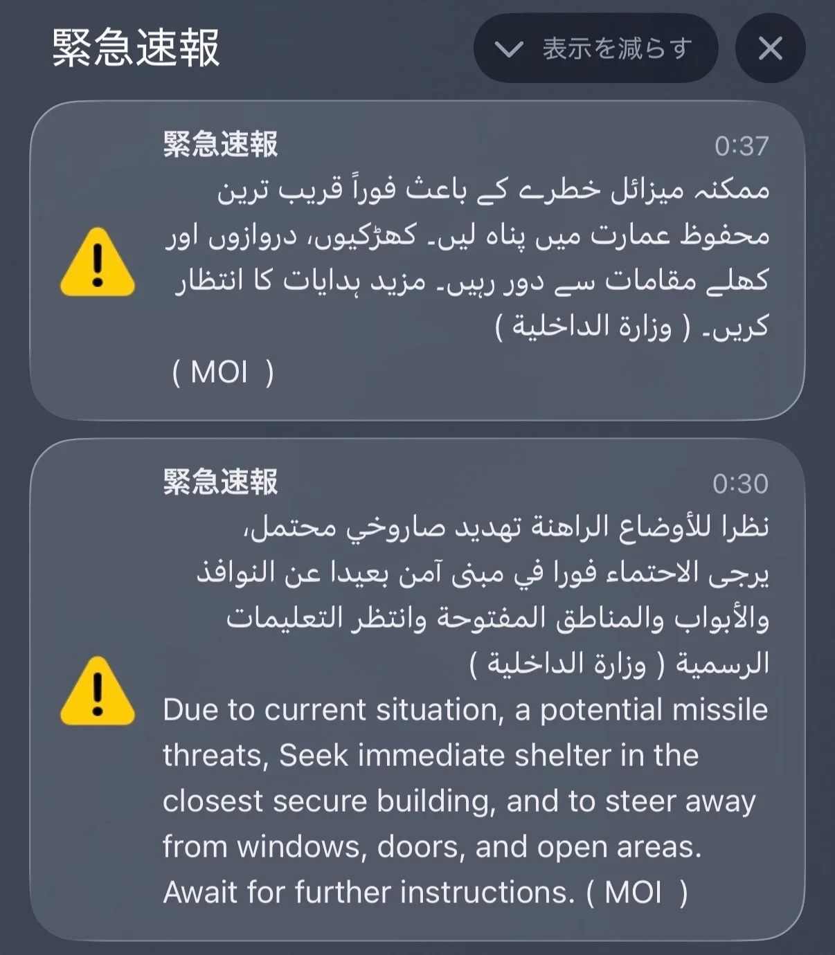 ミサイルに注意というまさに戦禍にいることを体感する通知だった。