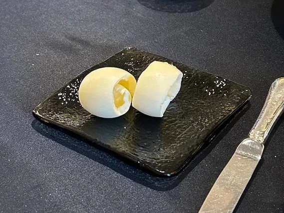 ・新名産ホッキ目に子椒を効かせたプールプランソースを合わせ