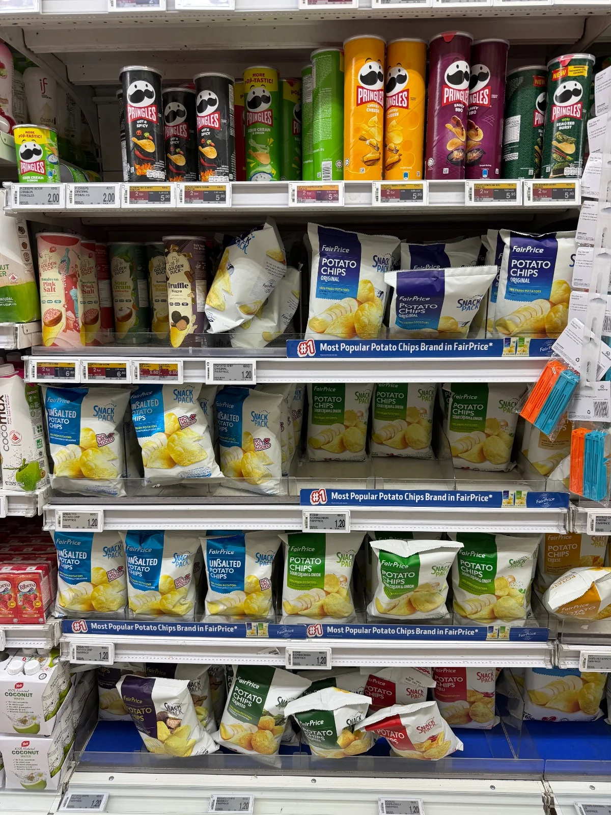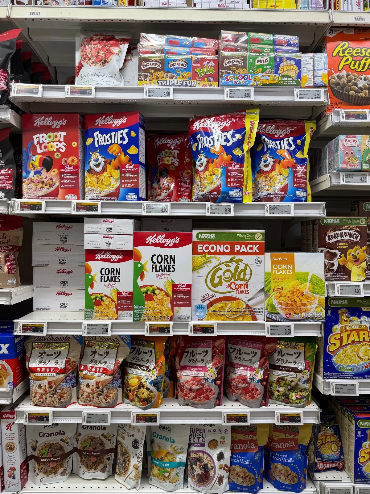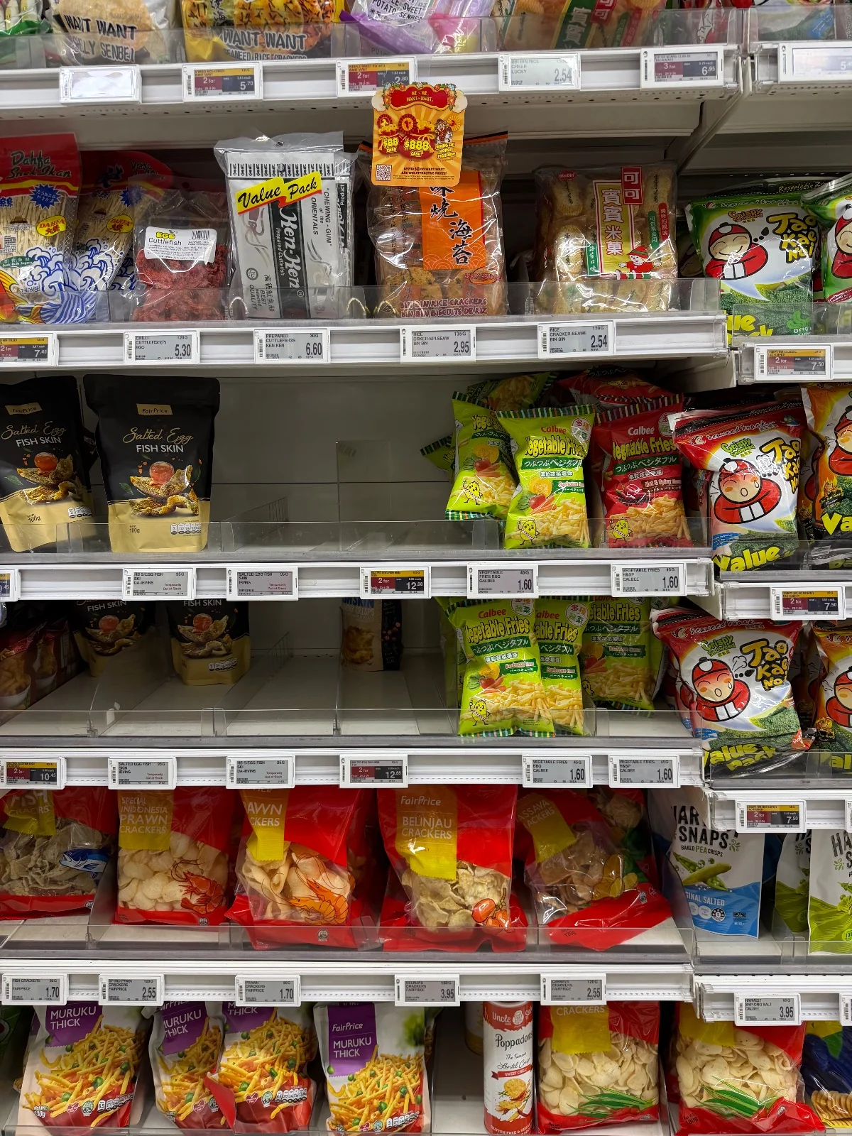 【シンガポール現地スーパー】ガムは売っているのか!?&物価調査 2026/03/18 シンガポールスーパー市内には多くのスーパーがある中で、特にリーズナブルと言われているFair Priceを訪れた。店内の様子水シリアルパン類卵フルーツアイスお菓子物価は日本と同じくらいだった。お水に関しては600mlを0.35$で購入できるほどである。例えばカフェや雑貨店を訪れるとシンガポールの物価の高さを感じるので、そのように日本と同じと感じられたのはこのお店が特筆して安いからだと思う。お土産コーナーもあり、ばらまき用のお菓子も購入できるので、お土産をたくさん買いたい方にはここをお勧めする。