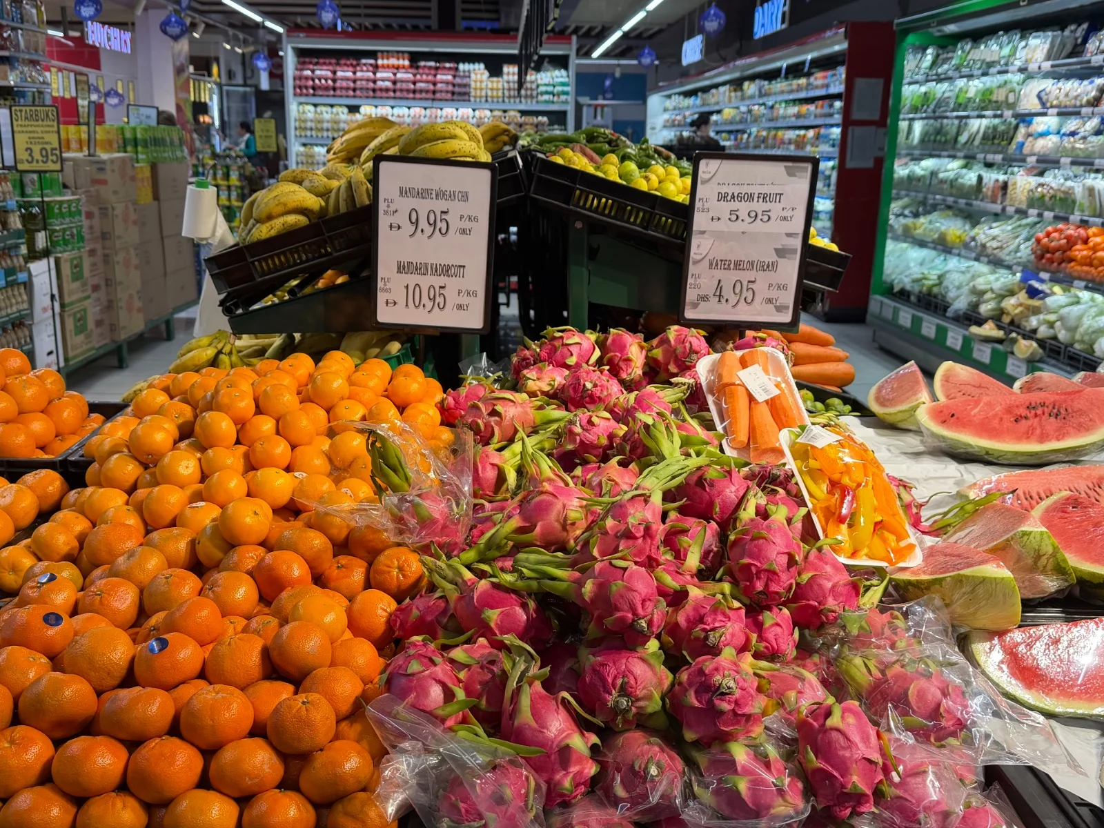 もちろん、ブルジュハリファ周辺やパームジュメイラあたりの観光街の飲食店はとても高い印象がありましたが、少し離れた地域のスーパーではとてもお手頃な価格で生活必需品を手に入れることができます