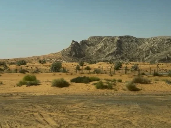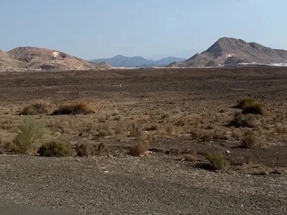 バス①オマーンへ向かう道中は、ドバイの中心部を抜けていくと、ブルジュハリファやパームジュメイラがあるような場所とは180度逆の景色が広がっていた。数千年前から何も手入れをされておらず、そのままの姿を維持しているような景色である。
