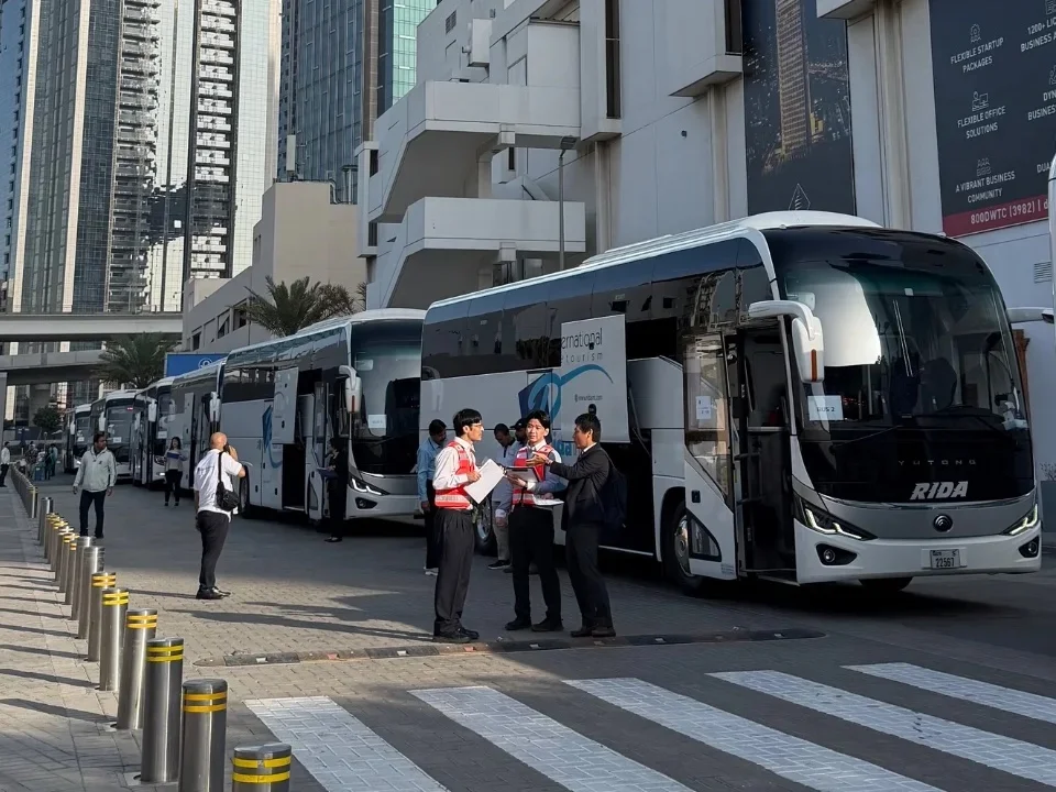 ホテルで朝食をとり、8時半に集合とのことで急いで食べて出かけた。集合場所には日本人が60名ほどいた。老若男女問わず、様々な世代の男女がいた。おそらくオマーンへ出たいという意思を示した人は全員乗ることができたのだろう。また、バスは8台手配されていて、8台を60人で乗り分けるという贅沢な状況だった。