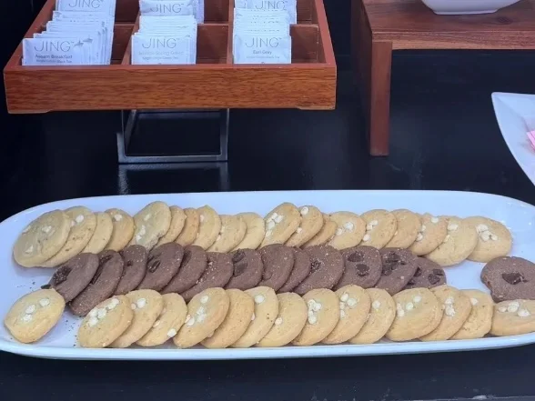 シェラトンでは宴会場に入れていただき、Wi-Fiを繋げてこれから必要な作業を各々するようにと言われた。おそらくご厚意で、コーヒーなどの飲み物やクッキーの振る舞いがあってありがたかった。